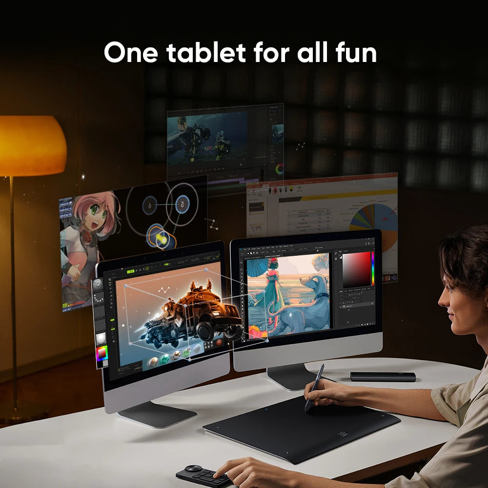 The updated Deco Pro series is not just a technological leap forward, but also a unique, incredibly ergonomic design, which was called One Paper. One Paper is characterized by a monolithic surface without keys and maximum workspace, but the main thing is to imitate the process of creating with a pencil on paper, when the feelings of a digital artist are as close as possible to the sensations of working with traditional tools.